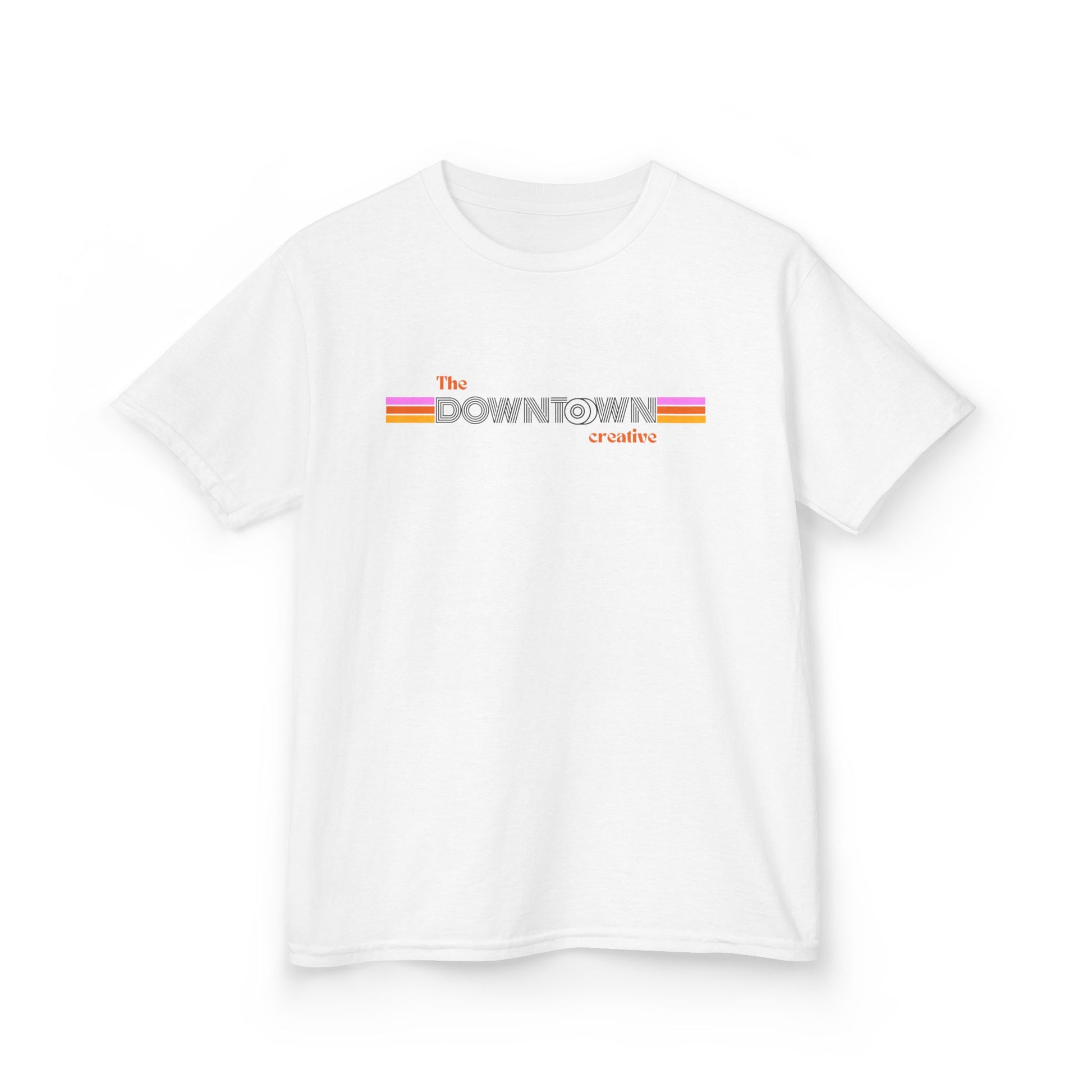 Merch - Kids T‑Shirt — 'The Downtown' Retro Stripe Logo